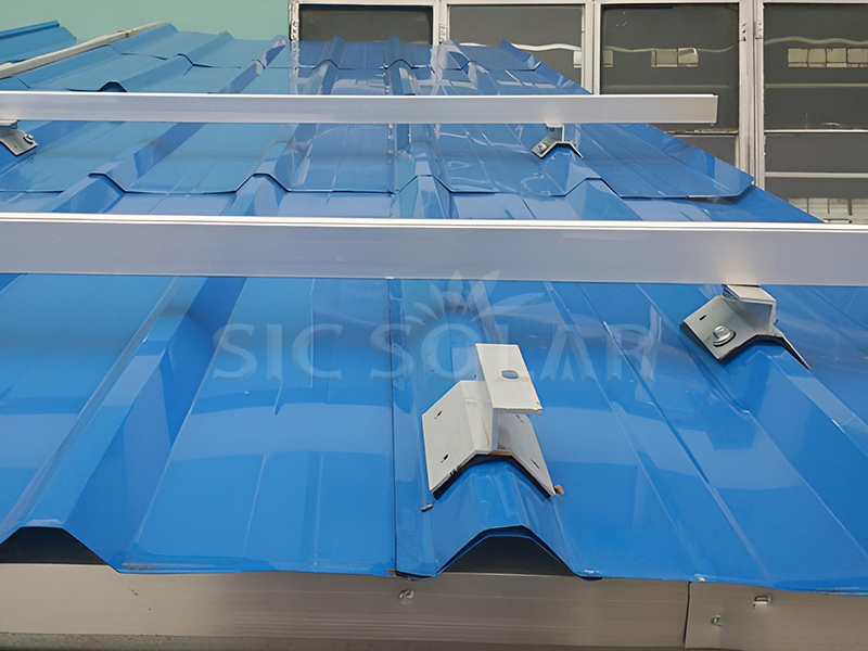 Pengapit Solar Aluminium Untuk Kepingan Bumbung Logam Trapezoid mengambil masa beberapa minit untuk memasang. Pengapit ini memegang panel solar dengan kukuh pada tempatnya dengan bilangan alat yang sangat minimum yang terlibat lantas mengurangkan masa pemasangan dan kos buruh.
