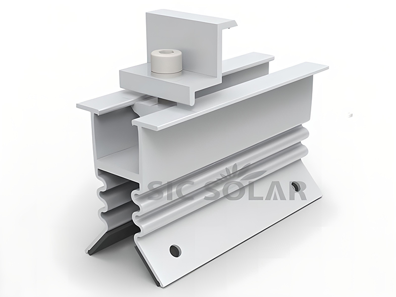 5️⃣ Pasang Panel PV – Letakkan panel solar pada rel dan selamatkannya dengan pengapit tengah dan hujung.