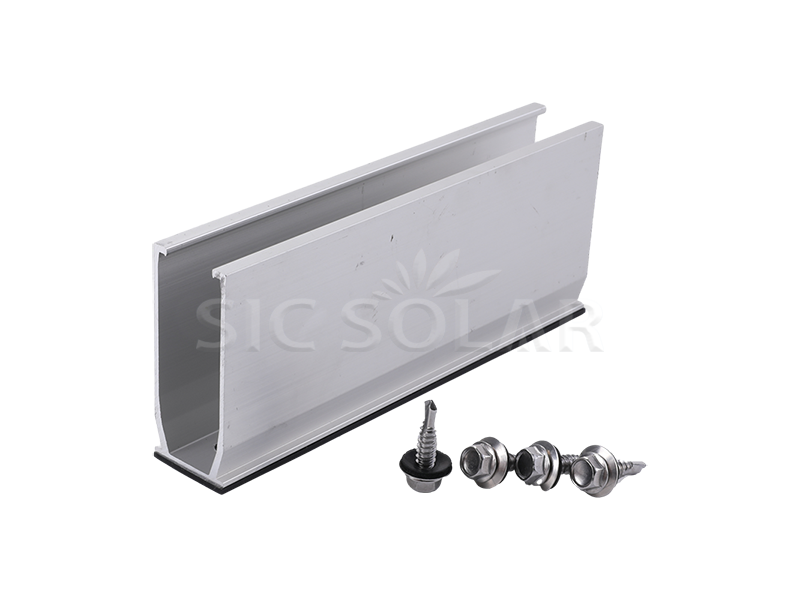 Sistem pemasangan rel pendek aluminium bumbung logam gunakan rel aluminium yang lebih pendek yang lebih ringan dan lebih mudah diurus berbanding dengan rel panjang tradisional. Rel ini biasanya dilekatkan terus pada bumbung logam dengan cara pengapit atau kurungan. Rel dibina daripada aluminium premium yang terkenal dengan rintangan kakisan, ringan dan ketahanan yang baik. Ini menjamin bahawa sistem pelekap mempunyai jangka hayat yang panjang walaupun ia tertakluk kepada keadaan cuaca yang teruk.