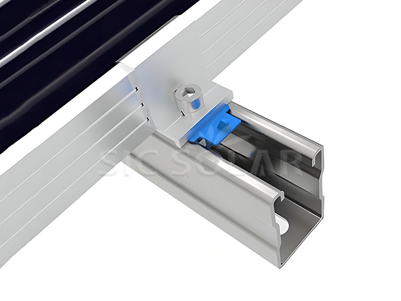 Pengapit hujung sokongan tanah keluli karbon solar direka bentuk untuk membetulkan panel solar dengan kukuh pada rel pelekap, menghalang panel daripada bergerak dan bergetar, menyumbang kepada kestabilan dan prestasi keseluruhan tatasusunan.