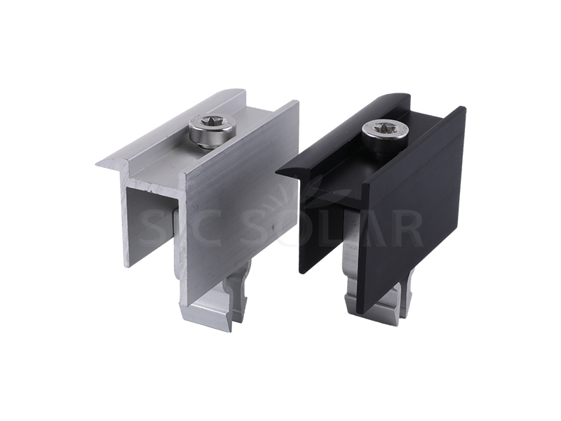 Pengapit Solar Pengapit Pertengahan/Hujung Pasang Pantas Dengan bolt panjang dan pendek, pengapit boleh memenuhi ketebalan panel solar dari 29mm hingga 53mm. Kedua-dua pengapit dan bolt aluminium boleh menawarkan warna perak dan hitam.