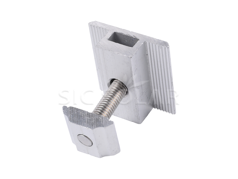 Sistem rak panel solar pengapit tengah berongga datang dengan bolt untuk disesuaikan dengan sistem pagar pelekap solar, untuk memasang berbilang panel bersama-sama dengan pengapit hujung untuk memasang panel tunggal.