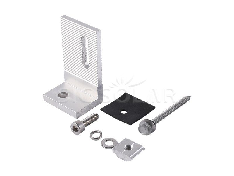 Panel Suria Tebal Kaki L Untuk Pemasangan Bumbung Semasa pemasangan, kaki L diikat dengan selamat pada bumbung menggunakan bolt penambat atau skru lag. Panel solar kemudiannya dipasang pada kaki L menggunakan rel pelekap atau pengapit.