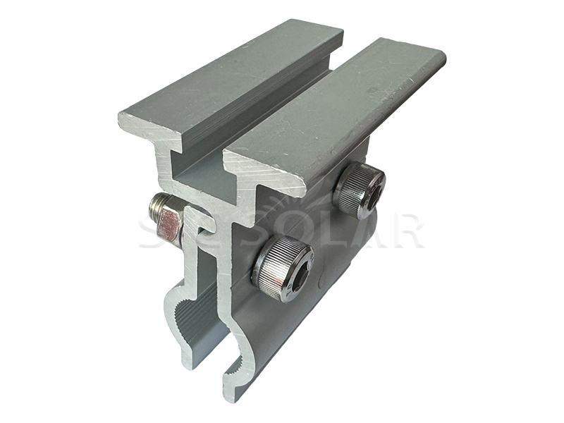 4️⃣ Pasang Rel – Pasangkan rel pelekap solar pada pengapit menggunakan bolt keluli tahan karat atau T-bolt, memastikan penjajaran yang betul.