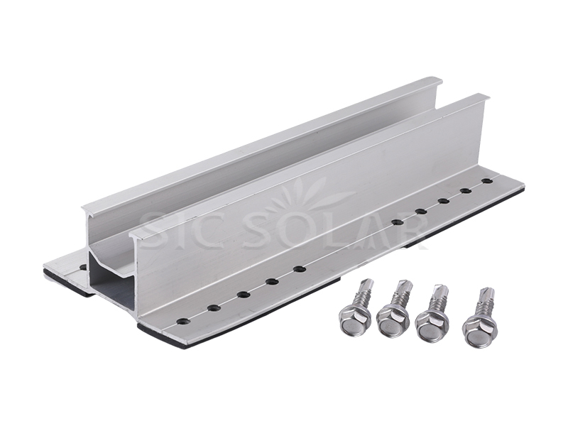 Rel Ultimate Solar untuk Bumbung Logam Trapezoid Dengan skru penggerudian sendiri dan getah EPDM kalis air, ia memudahkan pemasangan dan menjimatkan masa serta kos. Panjang profil aluminium boleh 300mm, 400mm atau disesuaikan jika perlu.