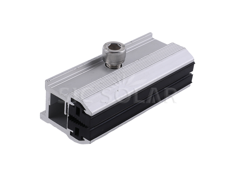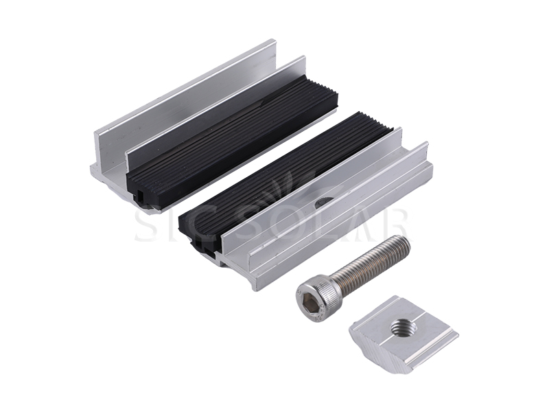 Pengapit hujung panel solar filem nipis boleh digunakan untuk jenis spesifikasi modul solar nipis-fim atau modul solar tidak berbingkai kaca. Getah di bahagian tengah akan melindungi panel solar filem nipis dengan baik.Bahannya adalah aluminium tersemperit anod 6005-T5, Bolt, getah EPDM dan pengikat keluli tahan karat. Bahan berkualiti tinggi dan reka bentuk yang tepat boleh membetulkan stabil filem nipis.
